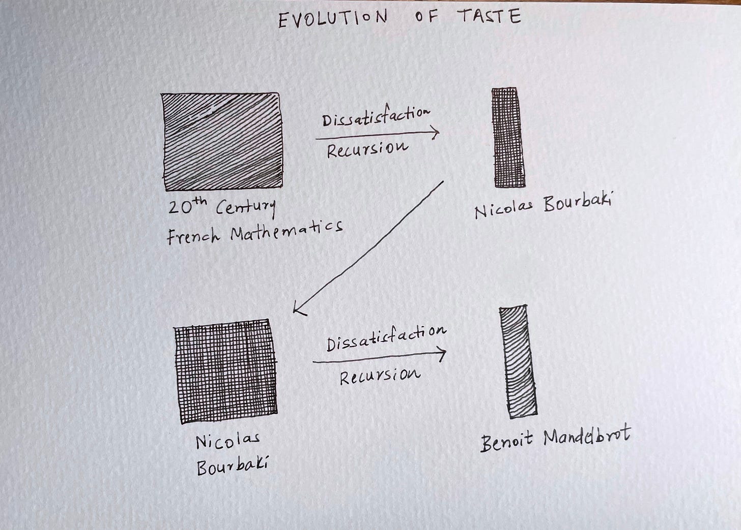 Recursion, when combined with dissatisfaction, gives us something unique. And for that, let’s return to Bourbaki.