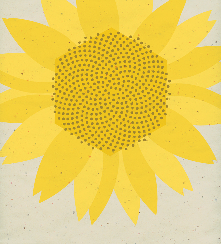 If you look at the centre of this sunflower, you will see a spiralling pattern. A sunflower pattern can be created by a simple repetitive process. Assume that it starts with a seed in the middle. Rotate it by a certain angle and create another seed. Then rotate again by the same angle and form a third seed. If one keeps rotating by the same angle and adding seeds, it will form a spiral that will keep growing in scale and distance from the centre.